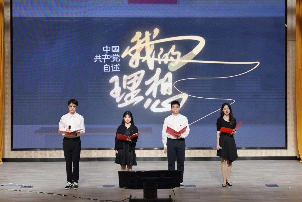 接着,四位毕业生党员带来角色朗读《一根线画出百年大党的理想》,他们以中国共产党自述者的视角,通过精彩演绎,描绘了百年大党一路的颠沛流离与丰功伟绩;用深情的讲述,带领毕业生党员一起回溯波澜壮阔的百年征程,立志为全面建设社会主义现代化国家新征程不懈努力。舞台剧《中国青年》用鲜活的表演生动地刻画了夏明翰、江姐、抗震救灾志愿者、疫情防控志愿者、未来教师等中国青年的形象,激情澎湃的镜头语言、富有热血的情节渲染,震撼人心、发人深思。