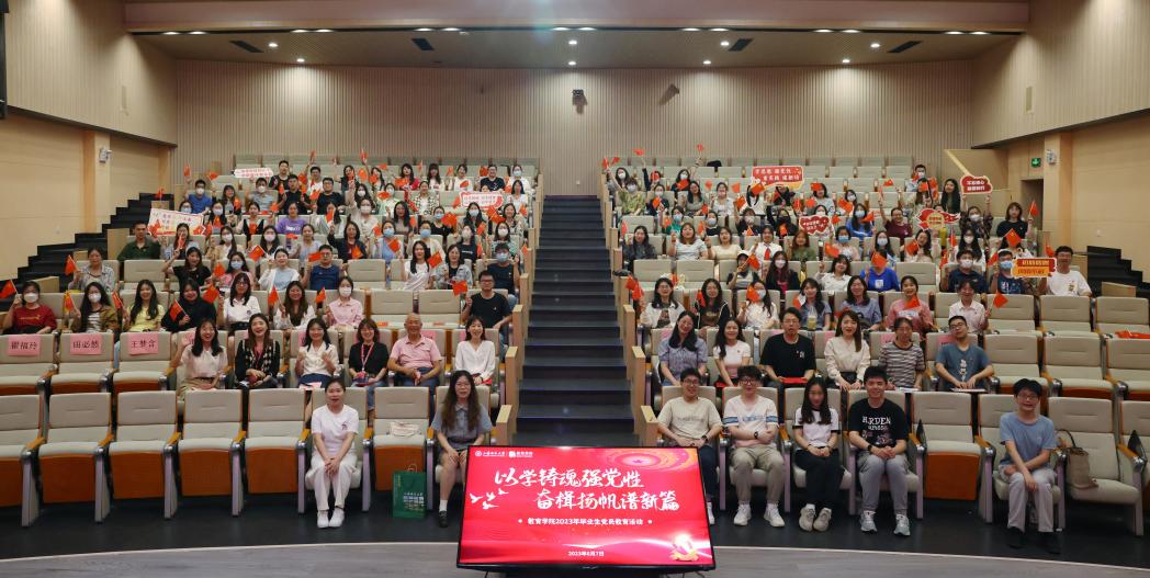 6月7日下午,教育学院在教苑楼C座多功能厅举行了“以学铸魂强党性 奋楫扬帆谱新篇”2023届毕业生党员集中教育活动。院党委副书记、副院长朱莹,特邀组织员谢利民,组织员,毕业班辅导员以及2023届全体毕业生党员出席了本次活动。这场将主题教育、角色朗诵、舞台剧、叮咛嘱托、集体宣誓等元素有机融为一体的集中教育活动,帮助毕业生党员们进一步筑牢理想信念,走稳新时代奋进之路。