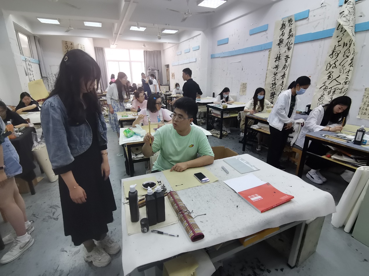 2023年6月21日下午,教育学院教育学专业与美术学院书法学专业的合作共建系列活动的第一场,师范生书法“学教协同·结对互助”实践活动在徐汇校区美术学院楼顺利开展。教育学院教育学专业2022级全体学生与美术学院书法学专业2021级学生代表,围绕师范生书法练习开展了互助学习活动。
