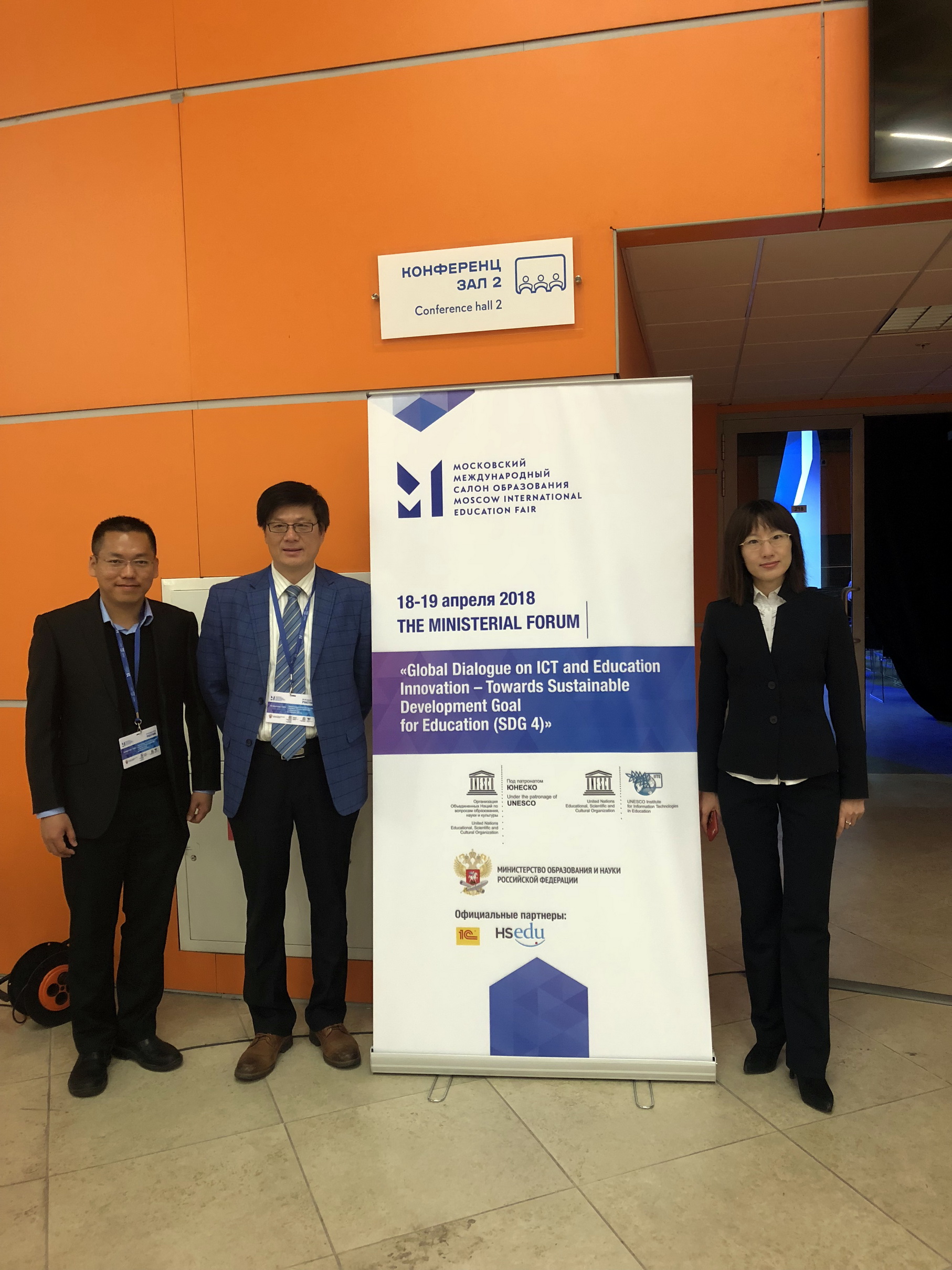 2018年4月16至19日,我院夏惠贤院长、江丰光教授、李绚兮博士参加了由联合国教科文组织教育信息技术研究所主办的教育信息技术国际论坛。此次论坛为部长级论坛,主题是:“信息沟通技术(ICT)全球对话和教育创新”( Ministerial Forum “Global Dialogue on ICT and Education Innovation:Towards Sustainable Development Goal for Education)。来自俄罗斯、中国、美国、英国、法国、荷兰、意大利、希腊、巴西、南非、加纳、毛里求斯、马来西亚、不丹、哈萨克斯坦、吉尔吉斯、塔吉克斯坦、乌兹别克斯坦等国代表参加了本次论坛。同时,本论坛还举办了小组会议,分别就“信息沟通技术(ICT)在未来教师和未来学校发展潜力”及“数字化教学和公开教育资源:将承诺和政策转化为行动和实践”等主题展开了充分的研讨。