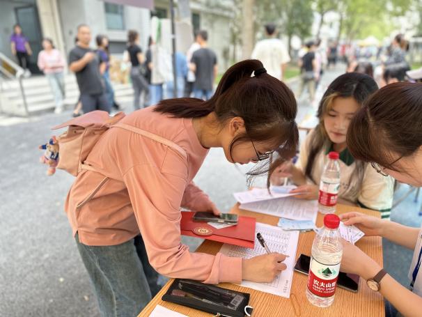 志愿服务,用心统筹护航。从搬运物资到布置场地、从报到指导到行李搬运,每个迎新岗位上的志愿者始终以满腔的热情和认真的态度迎接每一位新生的到来。核验信息、扫码报到、发放资料、入住宿舍……50余名学长学姐们积极承担迎新服务工作,只为给新生留下最美好的初印象。