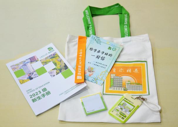 满心欢喜,“育”见未来篇章。学院围绕“育你相遇”的主题,以教院绿与嫩黄色相搭配,通过手绘教苑楼和涂鸦装饰设计了新生专属大礼包,包括卡套、便利贴、新生手册、帆布袋及给学弟学妹的一封信,寓意着对新生的美好祝愿与殷切期盼。