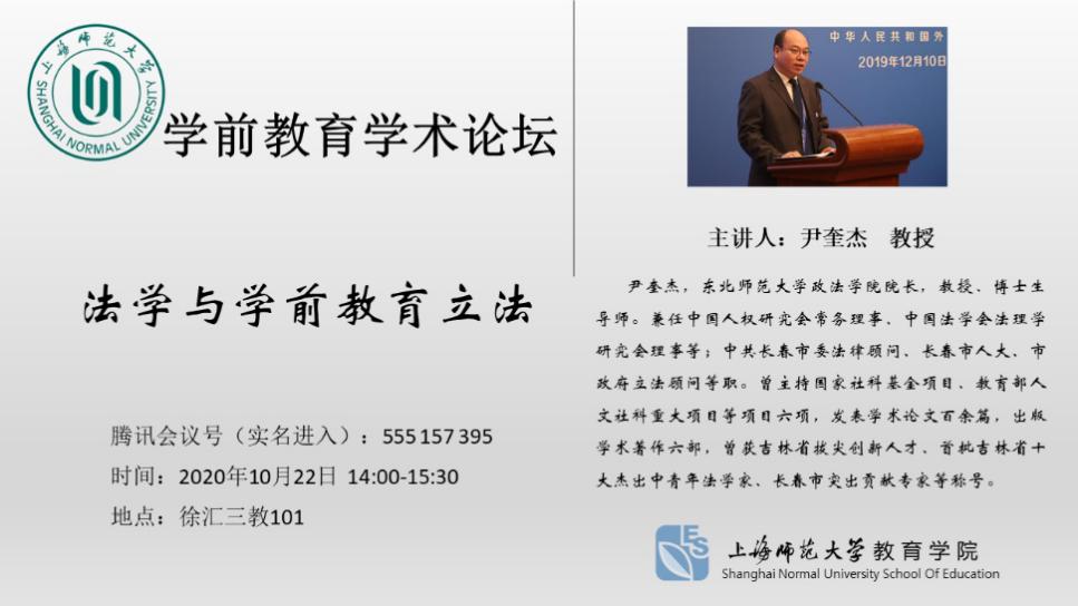 2020年10月22日,伟德国际BETVlCTOR与东北师范大学教育部联合举行了一场主题为“法学与学前教育立法”的学术报告。