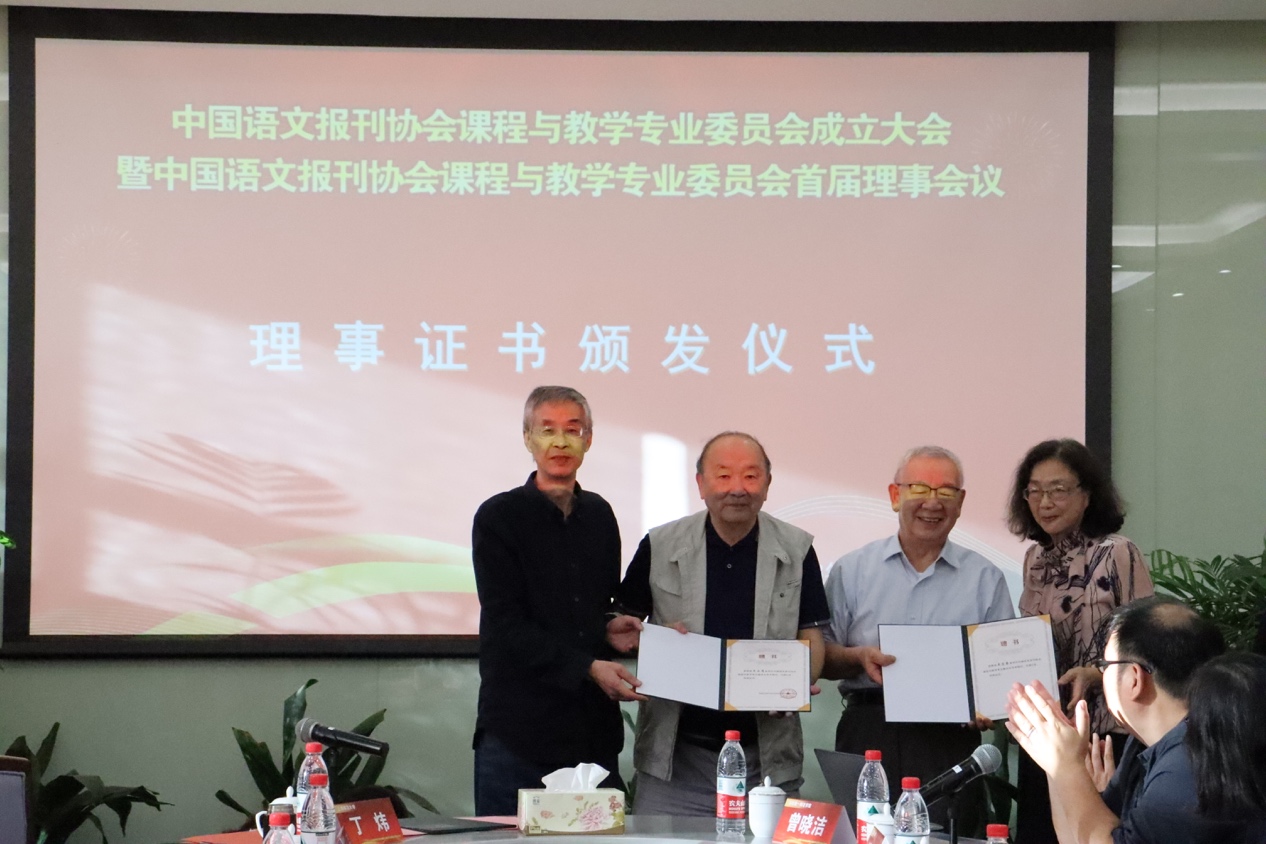 随后,王晨会长与专委会首任理事长王荣生教授为中国语文报刊协会课程与教学专业委员会揭牌,并为专委会首届理事会成员颁发聘书。