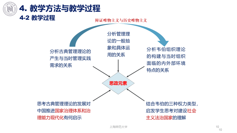王健老师对9位青年教师的表现给予了高度评价,提出课程思政应做到“实、新、深、正”:“实”在于课程思政应立足专业课,在夯实专业课的基础上找到最恰当的思政目标映射点;“新”强调在课程思政中融入新史料、新时政、新案例、新话语;“深”在于课程思政不仅仅体现在思政目标和内容上,也应在教学方法和范式上将思政教育内化;“正”则强调课程思政教学设计的科学性,应充分考虑学生的认知和思维特点。