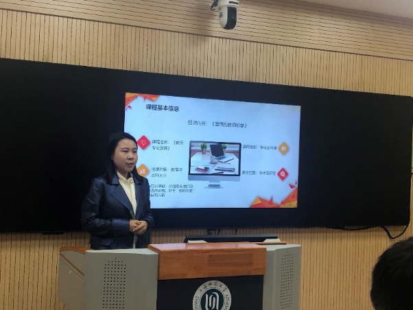 11月19日下午,教育学院举行了第一届青年教师课程思政教学设计比赛。本次活动由学院党委和学院青年教师协会主办,校基教中心主持工作副主任王健老师、院党委书记徐晓明老师、副院长石文典老师、院党委委员蔡丹老师和院党委委员陈勇老师担任评委。院青年教师协会会长胡天翊老师担任主持。