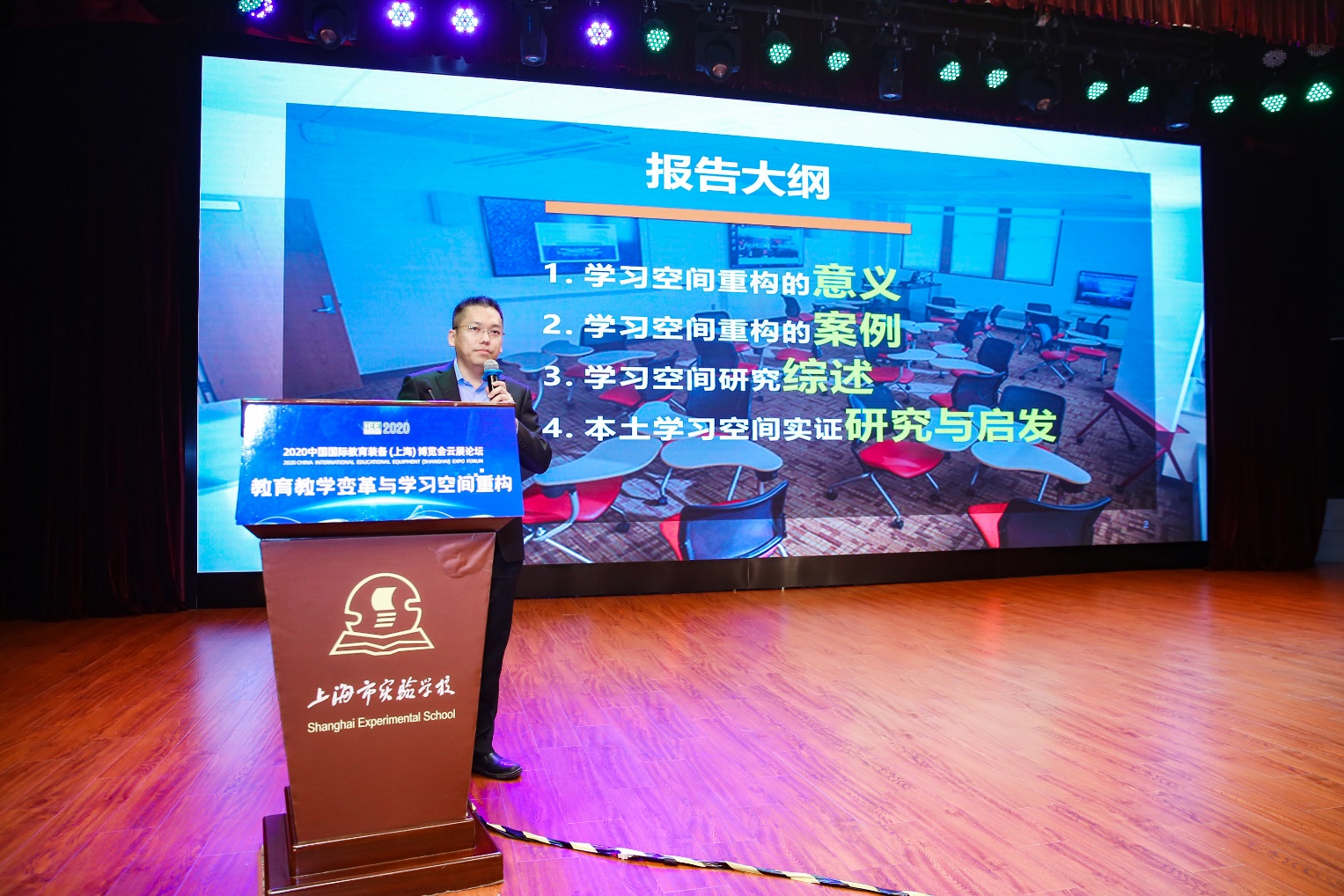 2020年11月19日下午,由中国教育装备行业协会、上海市教育学会主办,上海市教育委员会教育技术装备中心、上海教育装备行业协会、上海市实验学校承办,国新文化控股股份有限公司、上海教育杂志社、上海申雅会展公司协办的2020中国国家教育装备(上海)博览会云展论坛在上海市实验学校顺利举办,并进行网络同步直播。我院教育技术系系主任江丰光教授应邀出席并做主旨报告,报告题目为国内外学习空间重构案例分析与启发。