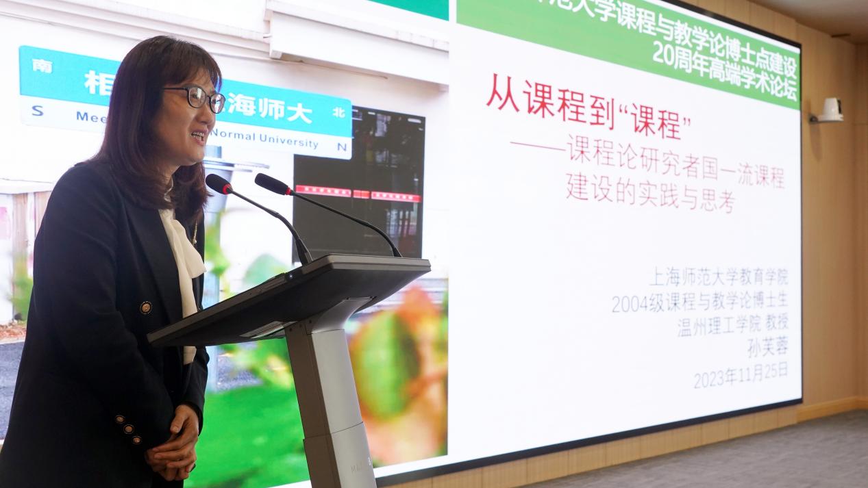 校友、温州理工学院副校长孙芙蓉教授、博士生导师做了“从课程到‘课程’—课程论研究者国家一流课程建设的实践与思考”主旨报告,介绍了在课程建设方面的成功经验,并就如何进一步推进课程建设提出了自己的思考。