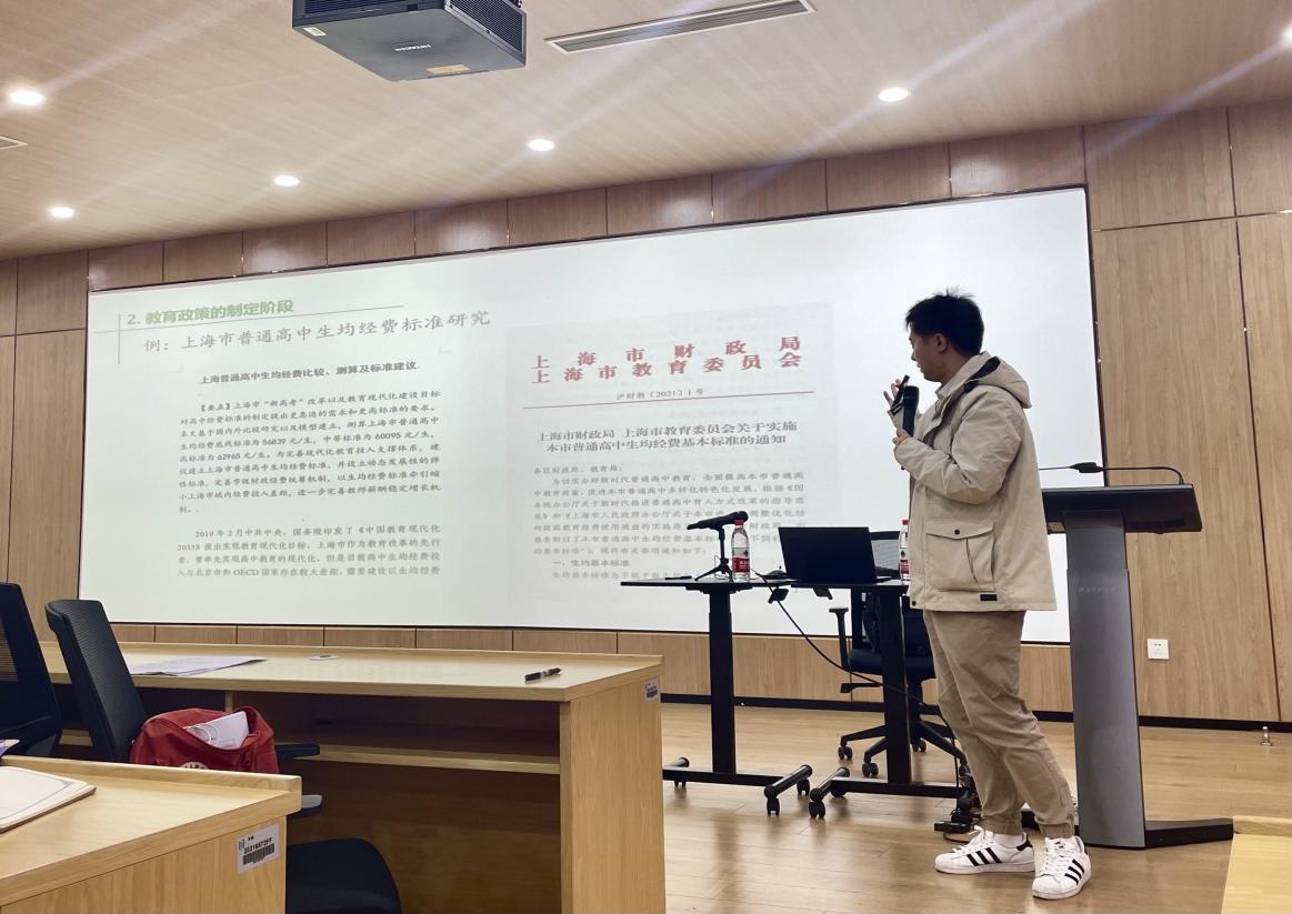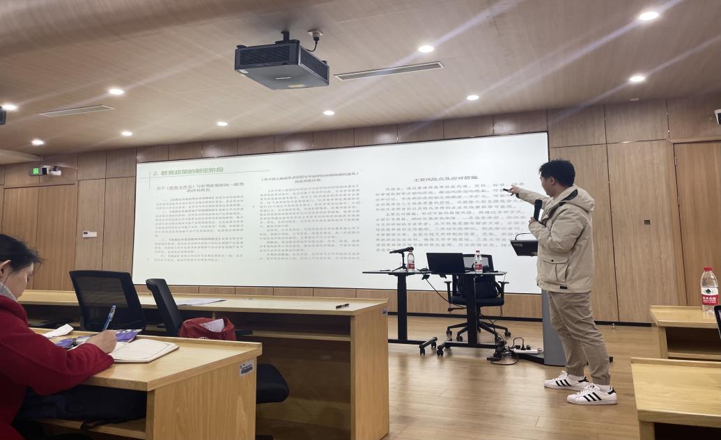 讲座伊始,姚昊博士从教育政策研究的视角切入主题。首先,他以自身长期从事教育经济与政策以及前沿课题研究工作的经历为背景,以翔实的政策文件资料为工具,就教育政策的选择、制定、颁布实施和效果评估四项过程进行详谈。随后,姚博士从问题意识与问题识别、研究方法的选择、实证类教育论文的写作三个方面展开鞭辟入里的讲述,为同学们做实证研究提供了诸多真切的思路与思考。最后,姚昊博士鼓励在场的博士生与硕士生们拓宽学术研究的视野与格局,不囿于研究方法本身,而是要学会以方法为工具,使得研究内容更加扎实与深刻。