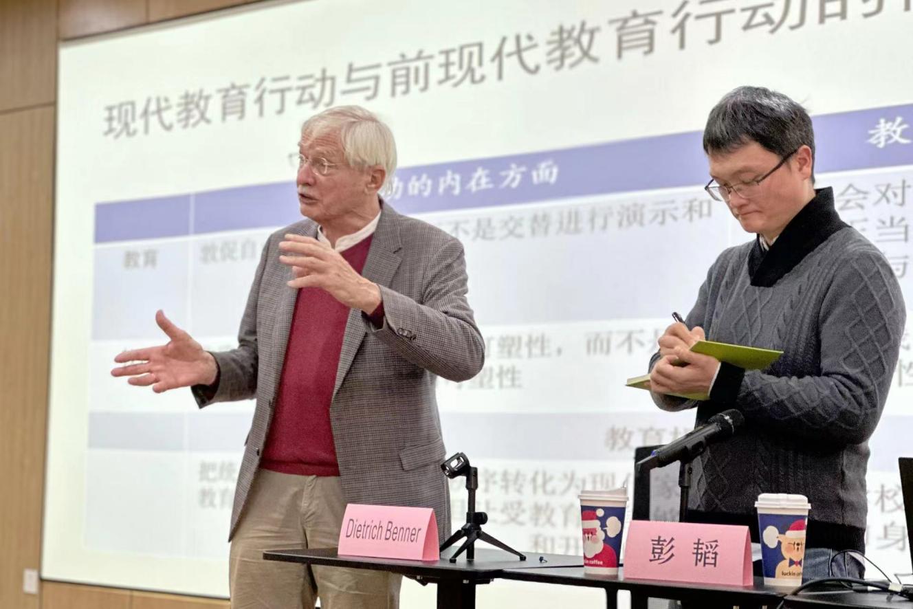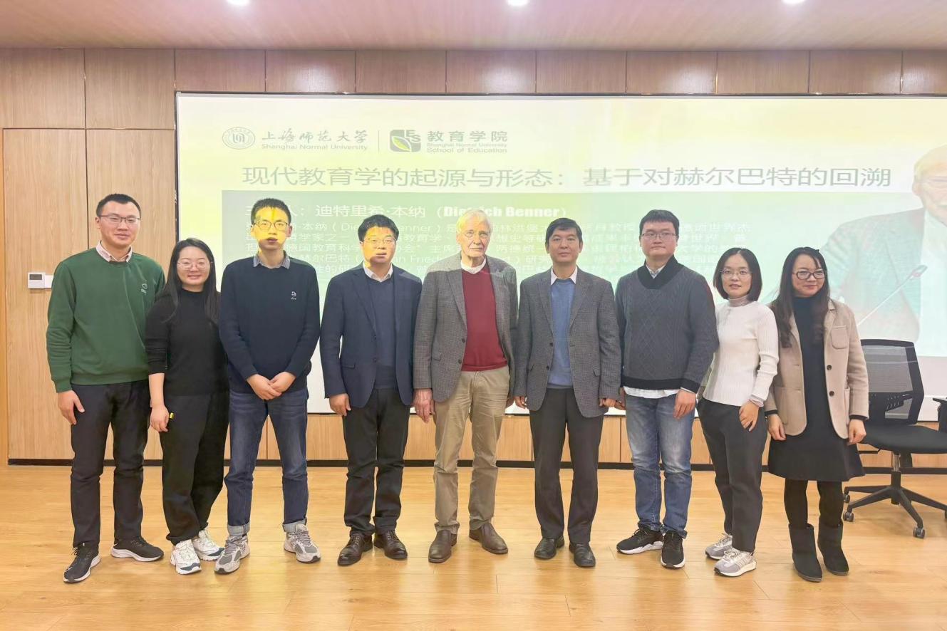 12月2日上午,德国著名教育学家迪特里希·本纳(Dietrich Benner)教授应邀在教苑楼B座107报告厅为我院师生作《现代教育学的起源与形态:基于赫尔巴特的回溯》主题讲座。讲座由上师大教育学院院长黄海涛教授担任主持,由南京师范大学彭韬老师担任翻译,教育学院魏峰教授和陈莹、廖青、胡君进、彭杰、刘莉、闻凌晨、卓晓孟、林凌等近百名师生到场学习。