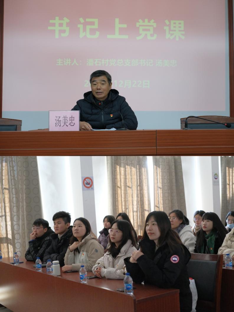 长兴镇潘石村党总支书记、村委会主任汤美忠对教育学院师生的到来表示欢迎,他带领大家一同观看潘石村发展改革纪录片,并根据纪录片内容对潘石村的地理位置、生态环境、主要产业、劳动教育和乡村振兴成果进行简要介绍。随后,汤美忠书记根据基层二十多年的工作经验和心得体会以“谋好事、用好人”为题,为教育学院师生上了一堂生动、富有实践意义的党课,他讲述了潘石村党组织在创建上海市文明村、上海市美丽乡村等工作中,有效发挥班子、党员、生产队队长和志愿者这“四支队伍”推进各项工作有序进行的实践经验。