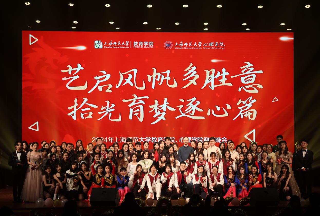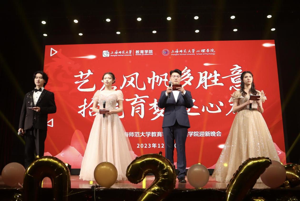 12月20日晚18点,伟德国际BETVlCTOR、心理学院“艺启风帆多胜意,拾光育梦逐心篇”2024年迎新晚会在上师大剧院顺利举办。学工部副部(处)长赵乐老师、校团委书记程雪老师、教育学院党委书记徐晓明老师、心理学院党委书记蔡丹老师和教育学院党委副书记、副院长朱莹老师莅临本次盛会。