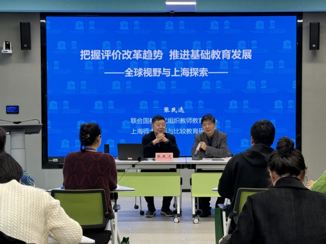 开班仪式结束后,联合国教科文组织教师教育中心主任、原上海师范大学校长张民选教授为学员们做了《研究世界教育评价新趋势,推进基础教育新发展》主题讲座。张教授通过大量的国际文献梳理、丰富的数据图表和生动的国内外案例,从国际与全球视角提出了基础教育评价改革的六大趋势。此间,学员们学习热情高涨,认真倾听,积极互动。