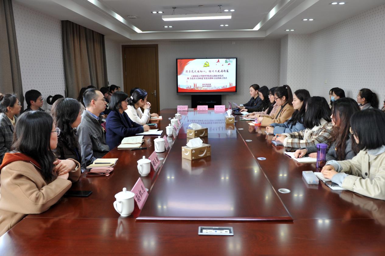 为进一步加强教育学院学生党支部建设,切实提升学生党建工作质量,2021年3月10日下午,“上海市党支部建设示范点”——教育学院心理学系教工党支部与“上海师范大学首批校级样板党支部”——学生生活园区第八、第九党支部结对仪式在教苑楼704会议室举行。教育学院党委书记徐晓明,党委副书记、副院长赵乐,党委副书记蔡丹,心理学系教工党支部委员李海江、孙红月,党员教师代表胡天翊以及学生生活园区第八、第九党支部党员代表出席仪式。仪式由党委组织员张文青主持。