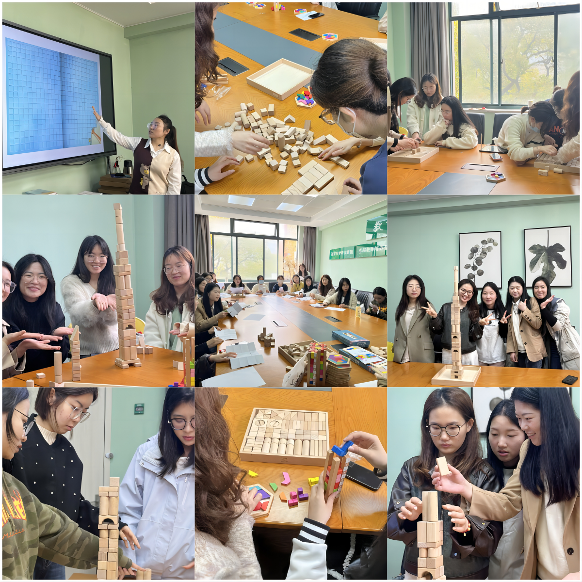 吴念阳教授向育梦志愿者介绍了“大带小”悦读推广团队创建以来所取得的成就,并指出在绘本阅读中设计互动游戏,不仅能够激发学生阅读兴趣,培养阅读习惯,更能促进学生思维、认知等领域全面发展。培训中,吴念阳教授携其团队成员尚海青带领志愿者共同学习绘本《搬过来,搬过去》与《好脏的哈利》,并指出在带读中可以结合“十一块”、“育脑塔”、“叠放积木”等教具开展延伸实践活动,提高学生空间几何、逻辑思维、数字认知能力。