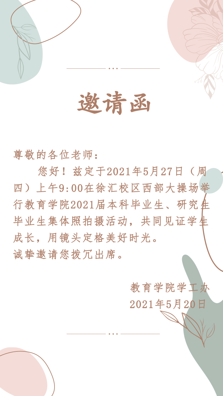 伟德国际BETVlCTOR2021届本科毕业生、研究生毕业生集体照拍摄邀请函