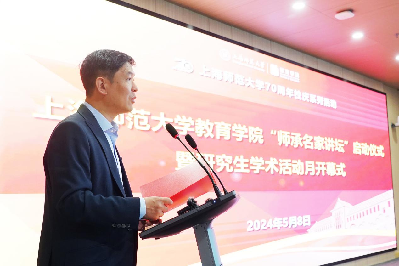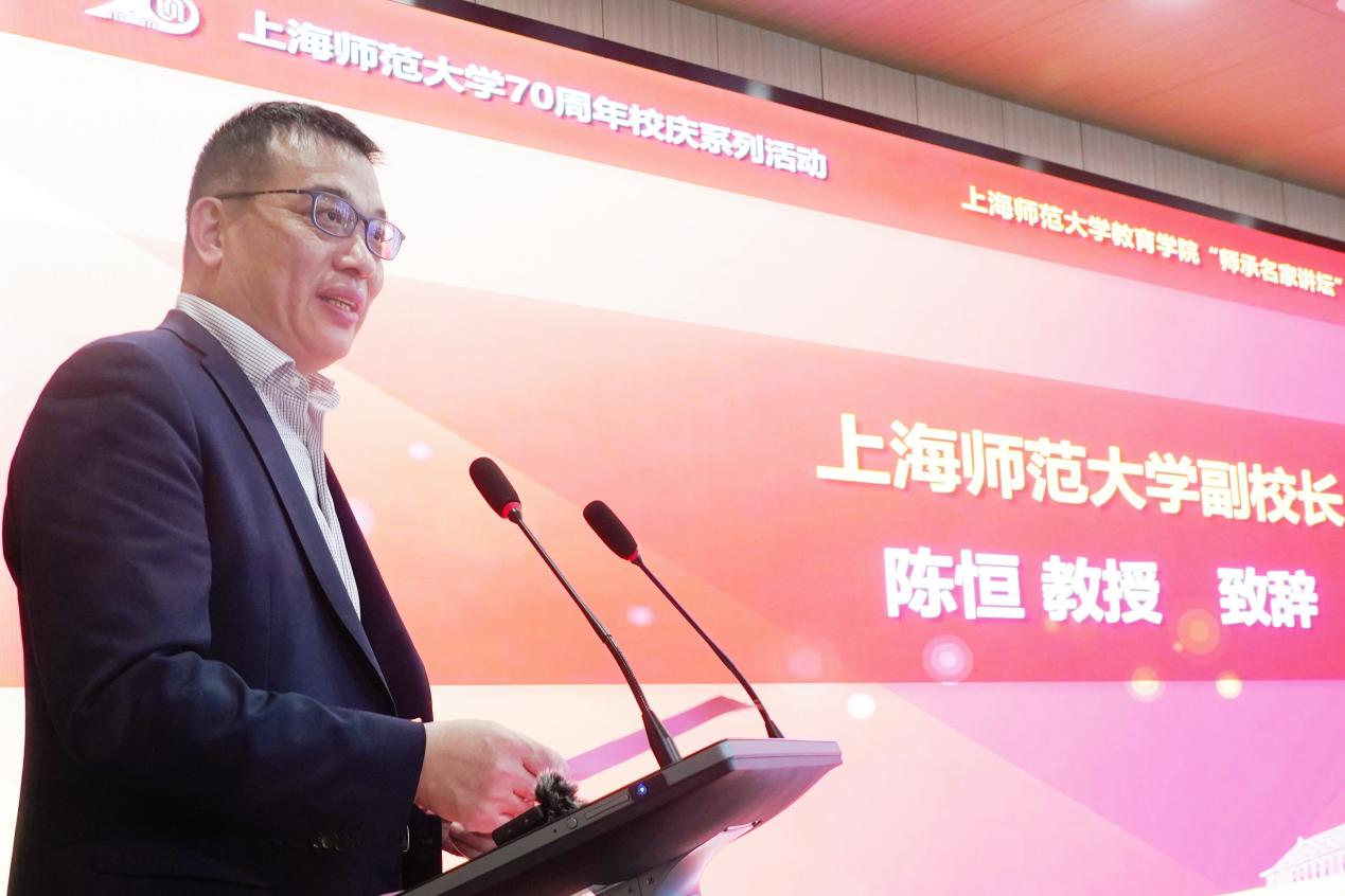 陈恒副校长代表学校致辞。陈恒副校长感谢顾明远先生长期以来对上海师范大学教育学科建设的关心和支持,鼓励教育学院办好“师承名家讲坛”和“研究生学术活动月”,为师生创造更好的学术交流平台,营造良好的学术氛围,全面提升研究生培养质量。