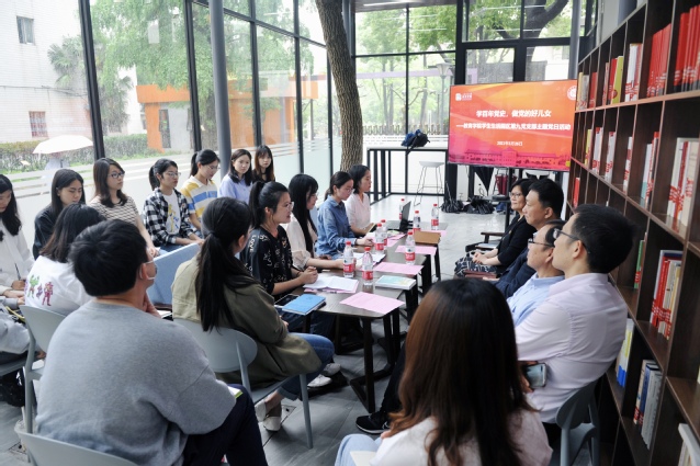 百年征程波澜壮阔,百年初心历久弥坚。一路风雨兼程,榜样的力量指引青年学子砥砺前行。与会成员集中观看了《退休不褪色 初心永向党》——教育学院退休第二党支部支部书记顾维萍老师的采访实录,并分享了采访时的心得体会。光荣在党40年,一份责任承载树人使命,一颗丹心守望教育薪火,学生党员们深深折服于顾老师一丝不苟的工作态度和爱岗敬业的奉献精神。全心全意为人民服务的精神,从先辈教育工作者的身上流淌到顾老师的身上,又在老党员教师与青年党员的交流中传承下去。活动最后,学生生活园区第九党支部书记刘晴做了“百年正青春、奋斗正当时”党课分享。