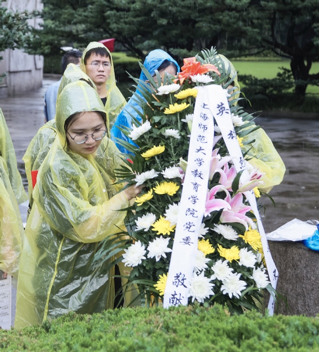 松柏苍翠映陵园,丰碑矗立忆英魂。教育学院全体新党员们来到陈延年、陈乔年烈士的墓前,庄严举行以“英烈功勋彪炳史册,烈士精神烛照未来”为主题的缅怀仪式,学习他们深厚的爱国情怀、坚定的共产主义信仰。1927年,陈延年与陈乔年烈士相继被捕,英勇就义。斯人已逝,但他们的英雄事迹和伟大精神如长江浪涛,永远在我们心中奔流。缅怀仪式上,全体肃立,集体默哀。学生党员代表向陈延年和陈乔年烈士敬献花篮。