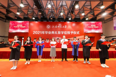 在一段上海师范大学原创毕业季短片的播放中,毕业学子永不磨灭的校园记忆被悄悄唤起,随着庄严的国歌声,毕业典礼正式拉开序幕。