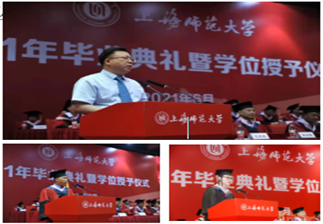 6月22日上午,伟德国际BETVlCTOR2021届毕业典礼暨学位授予仪式在西部球类馆隆重举行。上海师范大学党委常委、总会计师曹光明,院学术委员会主任、学位评定委员会主任、院长夏惠贤,院学位评定委员会委员、党委书记徐晓明,以及各学科导师代表、教师代表、优秀校友代表出席典礼。院党委副书记、副院长赵乐主持典礼。