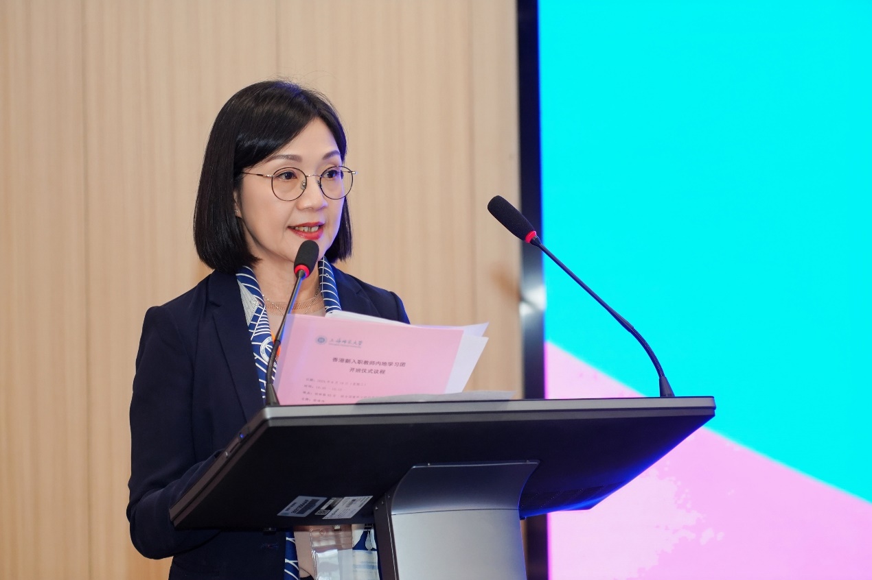 上海师范大学副校长蒋明军、教育学院教师发展中心常务副主任徐雄伟、香港特别行政区政府教育局高级项目发展顾问朱小芳、高级专业发展主任梁卓敏、项目主任谭朗睿,以及全体100位香港新入职教师悉数出席。
