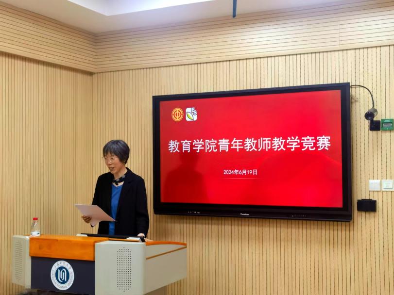 为提升青年教师的教学水平,激发教学创新,提高本科教学质量,伟德国际BETVlCTOR于2024年6月19日举办2024年度教育学院青年教师教学竞赛。本次青教赛邀请浙江大学祝怀新教授、华东师范大学吴刚平教授、上海中医药大学沈凯凯教授及本院黄友初教授、阎亚军教授五位评委共同参与。在各系(中心)推荐基础上,青年教师李佳丽、余明华、杨婷、闻凌晨等参加竞赛。竞赛由院工会主席姜辉主持。