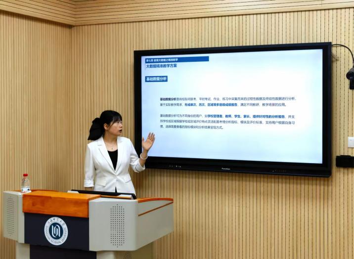 来自教育技术系的余明华老师细致地展示了信息化背景下教师如何利用教育大数据进行精准教学,如学情分析、智能作业、课堂实录等,进而形成系统的教学方案。