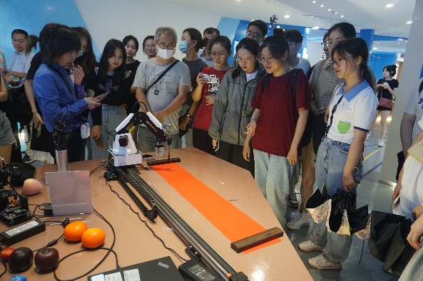本次参观活动的内容非常丰富,师生们首先在科创集散地的TED演讲厅观看了该中心的宣传视频,聆听了中心负责老师的对于中心的设立宗旨、活动形式以及成果的介绍。之后在工作人员的引领下,参观了中心充满科技色彩的展厅,展厅以机器人和人工智能教育为特色,各种功能丰富,造型各异的教育机器人让师生们赞叹不已,大家在展厅中品尝了机器人咖啡师冲调的咖啡,与书法机器人比拼了书法水平,丰富有趣的活动牢牢地吸引了师生。此外,展厅还展出中心学员历年来的优秀乐高编程作品,这些作品有的表现了嘉定区具有800年历史的法华塔,有的展现了学院对未来城市建筑的遐想,无不充满了想象力和趣味性。