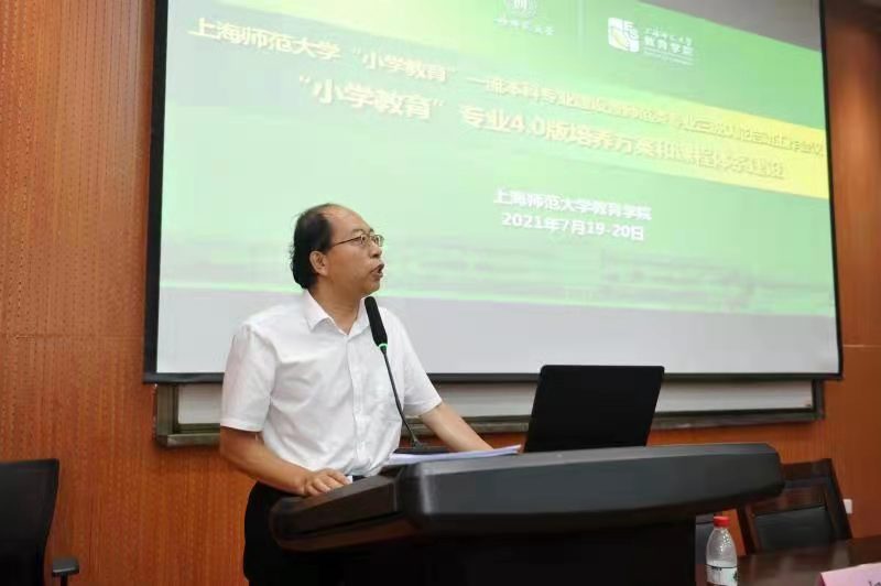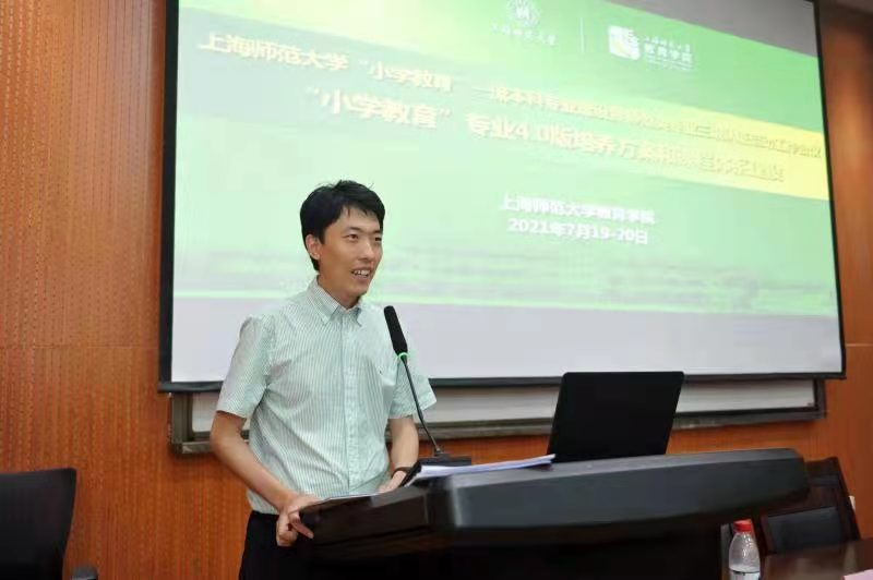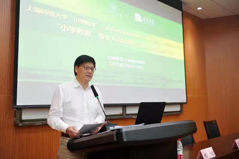 杨帆副处长随后代表学校发言。他首先肯定了“小学教育”一流专业建设之于学科建设、教育学院乃至学校的重要意义,指出教师教育是上海师范大学的立校之本,教育学院是我校教师教育的主力军,小学教育专业在教育学院和上海师范大学具有举足轻重的作用。“小学教育”一流专业建设是学校未来发展的重要组成部分,夯实“小学教育”一流专业的建设可以为学校其他师范专业建设起到示范作用,进一步提升我校在上海乃至全国基础教育中的影响力。