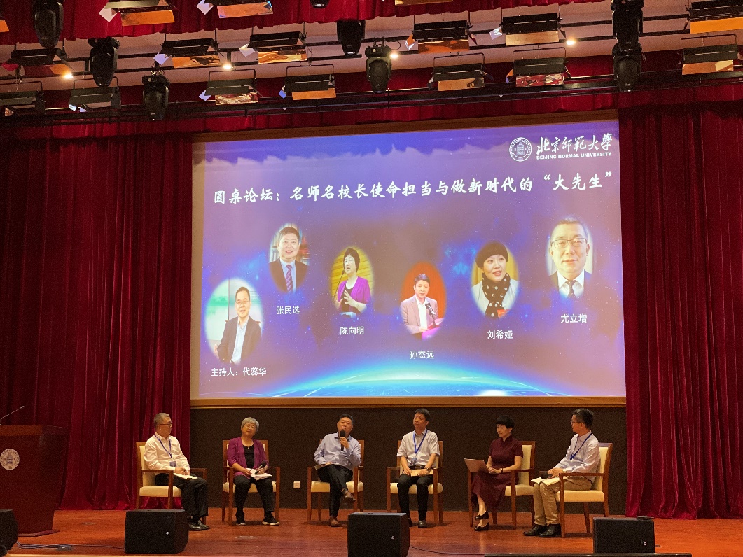 在总结宣传活动中,教育部副部长孙尧、教师工作司司长任友群、副司长宋磊、人民教育家于漪、北京师范大学党委书记程建平、清华大学文科资深教授谢维和、北京师范大学资深教授顾明远分别从党和政府对“大先生”的要求、从人民群众对“大先生”的期盼、从自身对“大先生”的理解等不同视角向名师学员们充分诠释了“大先生”应有的模样。在圆桌论坛互动环节,张民选教授结合自身当教师的经历,结合PISA和TALIS项目、结合中英数学交流项目生动地讲述了他对“大先生”的体悟,为全体与会者刻画了“大先生”的品格、品行和品位。