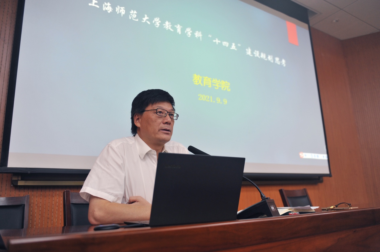 之后,夏惠贤院长从教育学科主攻方向、未来四年主要任务以及条件保障与学校支持等方面出发与大家分享了自己对教育学科“十四五”建设规划的思考。他指出,教育学科将努力建设成为服务与引领上海、长三角和国内基础教育改革与发展的国内一流学科。为了实现学科的高质量发展,他提出,学院未来四年的任务主要是建设一流科研平台、培育一流科研项目、培育一流科研成果和提升社会服务效能。最后,徐晓明书记对本次教职工大会作了总结。