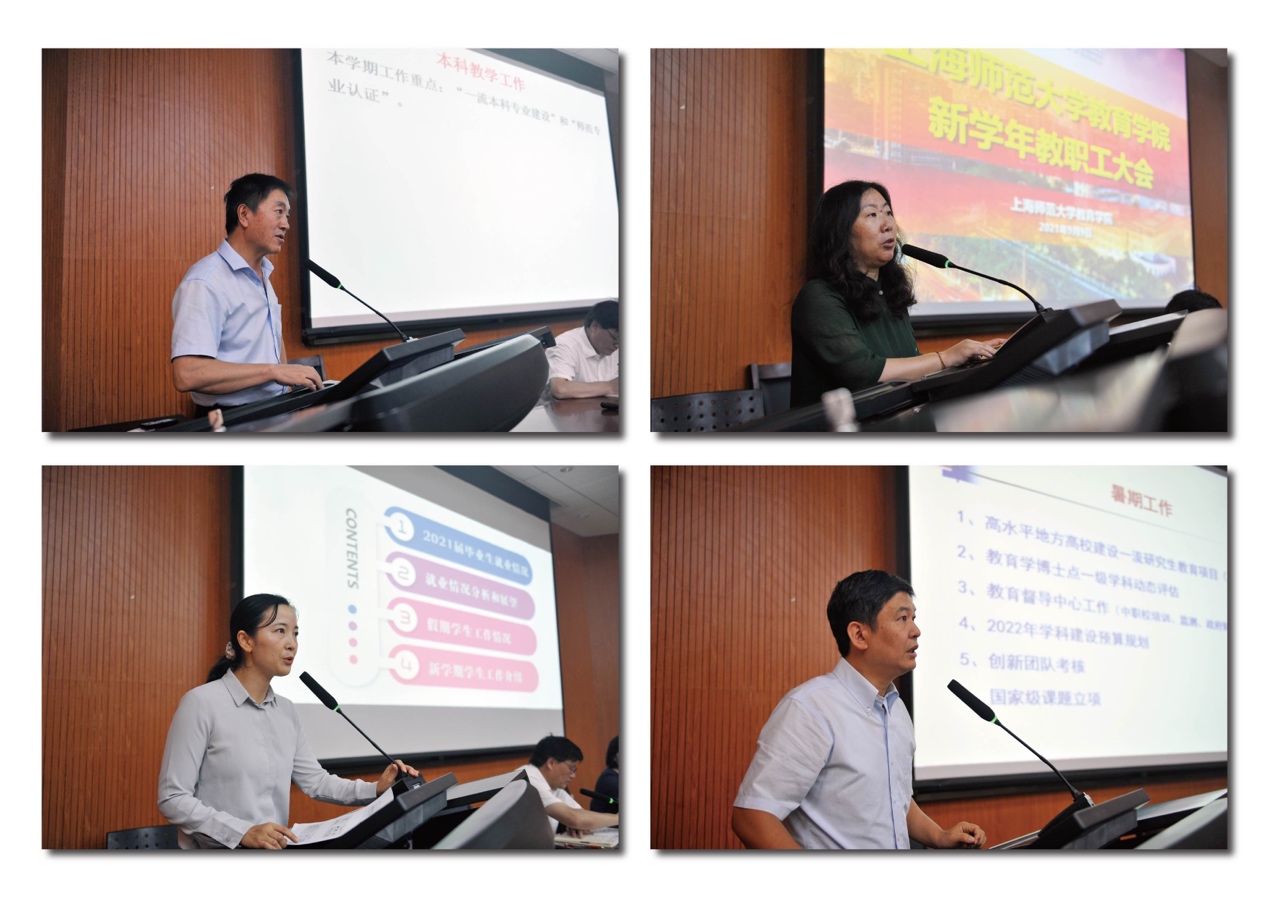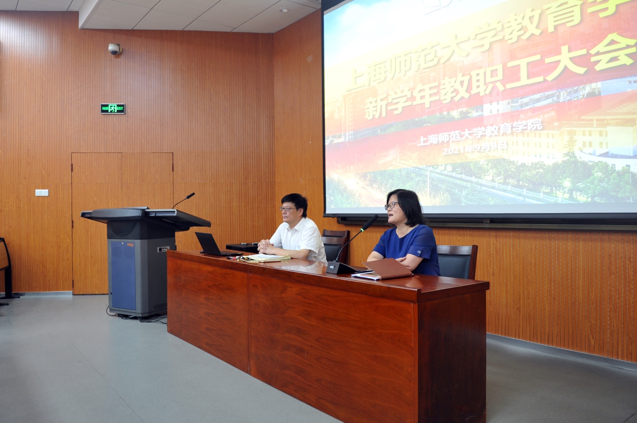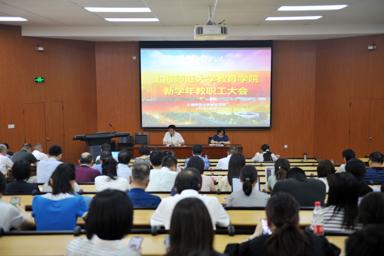 2021年9月9日上午,教育学院新学年教职工大会在徐汇校区东一教室顺利召开。学院党政领导及全体教职员工参加了会议,会议由院长夏惠贤主持。