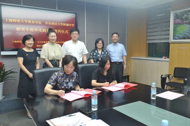 为加强研究生教学和科研实践环节的培养工作,培育高水平教师教育人才,2021年9月10日下午,我院与华东政法大学附属中学举行研究生校外实践基地签约仪式。出席签约仪式的有夏惠贤院长、徐晓明书记、黄海涛副院长、丁炜副院长,长宁区教育局宋晓岚副局长、华东政法大学附属中学傅松校长、陈依群书记以及其他相关人员。会议由华政附中陈依群书记主持。