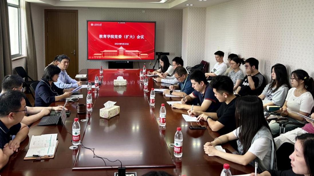 9月23日,教育学院召开教育学院党委(扩大)会议,传达学习习近平总书记关于党纪学习教育的重要指示精神,贯彻落实中央、市委和市教卫工作党委部署要求,总结学院党纪学习教育情况,部署推进党纪学习教育常态化长效化工作。院党委书记徐晓明主持会议并讲话。