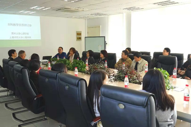 2018年11月10日上午,教育学院心理学系和苏州大学心理学系在苏州大学东校区文辉楼教育学院心理与行为科学研究中心举行了本科教学研讨活动。心理学系系主任李丹教授、本科教学负责人崔丽莹副教授等心理学系的24名教师和苏州大学心理学系多位老师参加了本次交流。