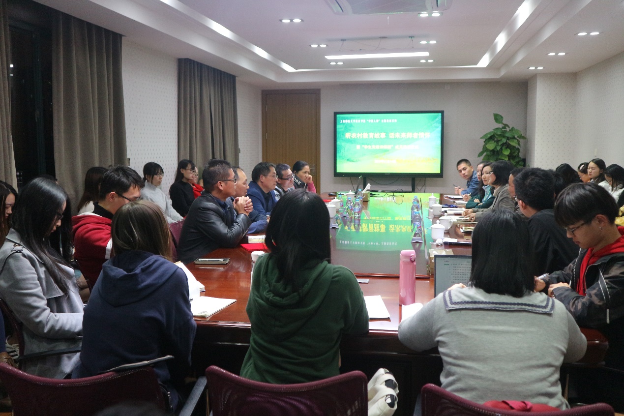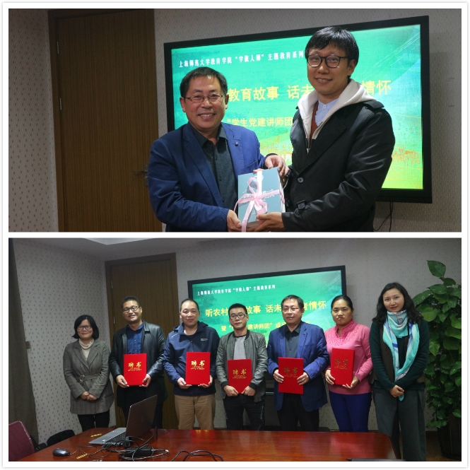 2018年11月14日晚,教育学院“学做人师”主题教育系列第三场活动——“听农村教育故事,话未来师者情怀”暨“学生党建讲师团”成员聘任仪式在教苑楼704举行。本次活动邀请了“校长国培计划”——2018年边远贫困地区农村校长助力工程培训班的五位校长与学生分享农村教育故事。学院党委书记徐晓明、党委副书记孙琳、初等教育系系主任王健、现代校长研修中心党支部书记李昱辉和教育学院学生党支部书记、党员和学生代表参加。