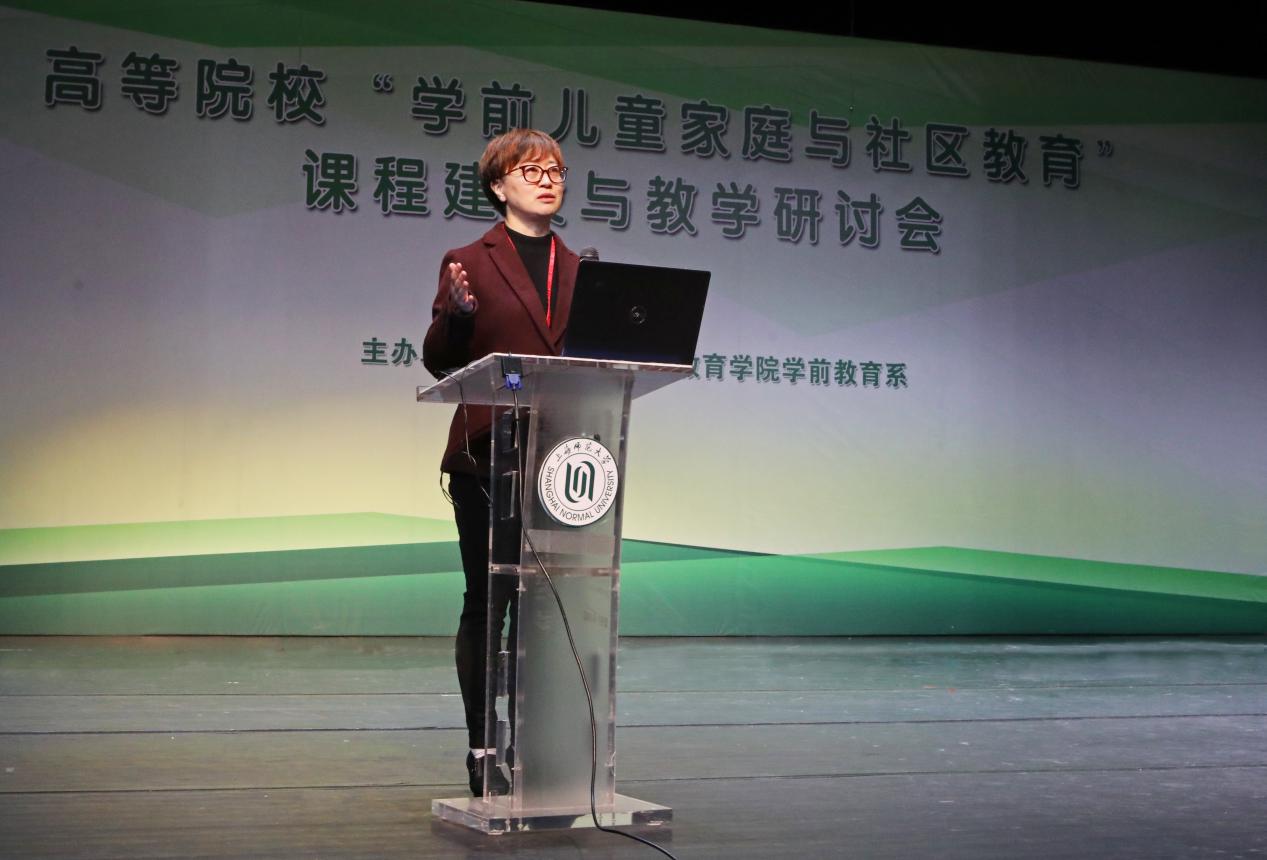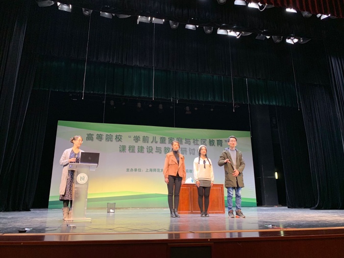 随后,李燕教授代表课程团队发表题为“学前儿童家庭与社区课程体系与授课模式”的演讲。为大家展示了这门课程的框架体系,以及在高校中如何进行创新教学和如何利用慕课、翻转课堂等方式进行课程建设,为“互联网+”时代下的课程建设提供了新的思路。