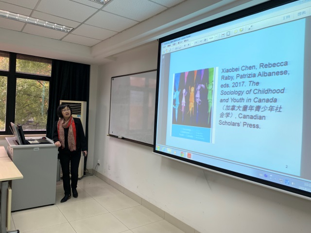 2018年12月11日上午十点,加拿大卡尔顿大学(Carleton University)陈小蓓教授于上海师范大学徐汇校区第四教学楼212教室为学前教育专业师生们带来一场题为“加拿大童年青少年社会学研究的前沿”的精彩讲座。上海师范大学学前教育系主任李燕教授主持了讲座,学前教育系部分教师参加了本次报告会。陈小蓓教授是加拿大卡尔顿大学(Carleton University)社会学与人类学系教授、博士生导师,副系主任,在儿童与青少年社会学领域有着丰富的研究经验以及丰硕的研究成果。