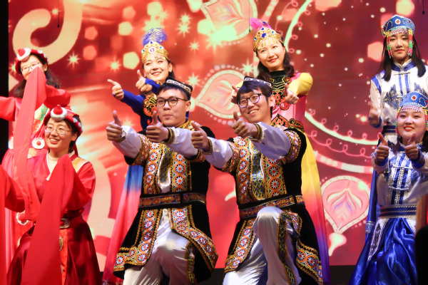 晚会中,少数民族学子各臻其妙,带来极具民族特色的表演。哈萨克族姑娘的《少女的舞姿》轻巧灵动、蒙古舞《啊,草原》舒展豪迈,空灵的歌声与柔美的舞蹈令人回味与难忘。晚会的最后,院辅导员和少数民族同学共同演绎舞蹈《赞赞新时代》,体现了教院一家亲的融洽氛围,全场气氛达到最高点。