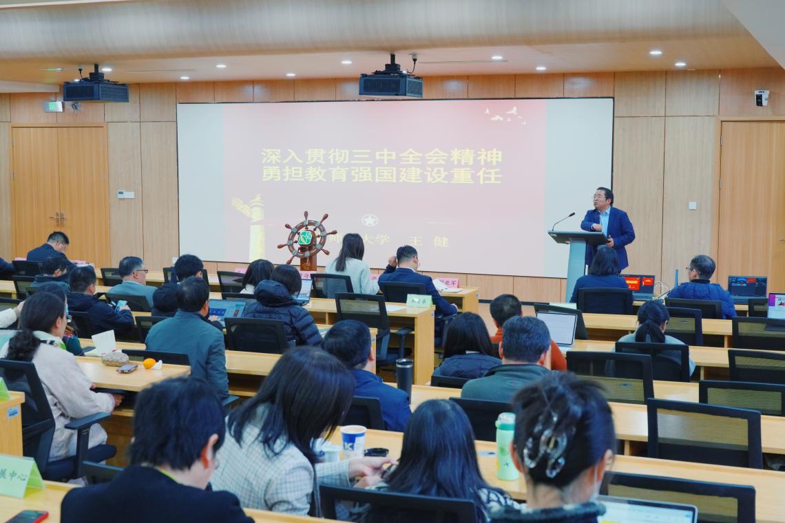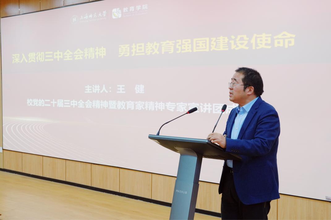 为深入学习贯彻党的二十届三中全会精神和全国教育大会精神,大力弘扬教育家精神,加快建设教育强国,11月27日下午,学院邀请校党的二十届三中全会精神暨教育家精神宣讲团成员,教务处、基教处处长王健教授做专题辅导报告,教育学院全体教职工参加。院党委书记徐晓明主持。