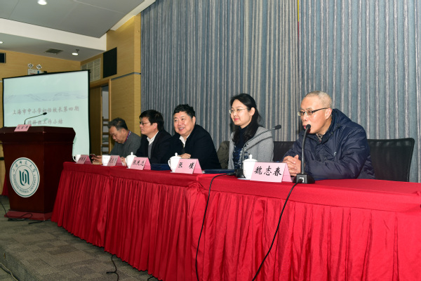 魏志春教授代表导师组对第四期研修班的工作做总结汇报,他强调,研修班除坚持一贯以来的以《义务教育学校校长专业标准》为根据、双导师制度等六项研修特点,还在三方面做了进一步探索:其一,在信息技术迅猛发展的背景下,研修内容增设了“提升信息素养”的学习单元;其二,通过全班考察全市范围内有突出成绩的学校,并结合小组成员学校的相互调研,进一步突出“实践能力”的培育;其三,进一步提高了交流发言的品质。魏老师对第五期学员寄予厚望,希望他们在即将开始的为期一年的研修活动中做得更好,有更多的收获。