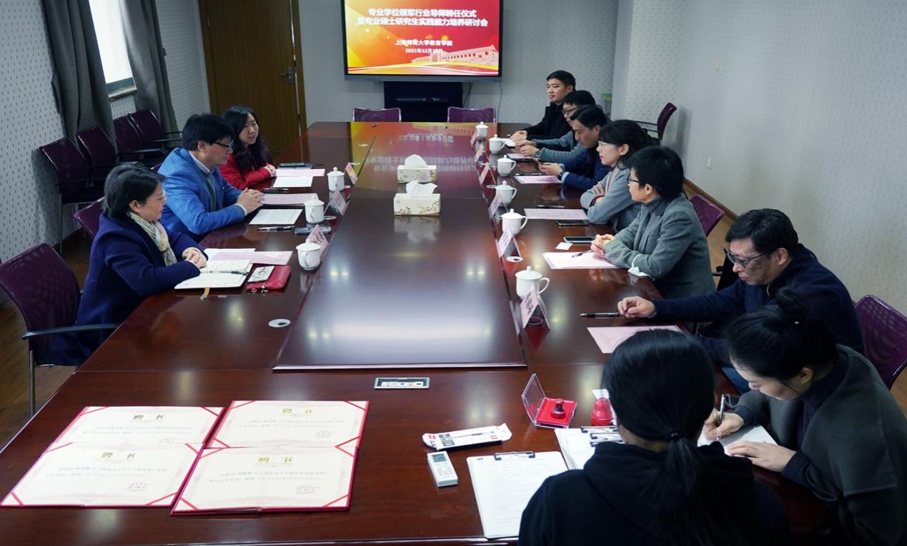 为加强“双导师”建设,优化专业学位人才培养师资,提升专业学位研究生实践能力培养质量,为社会提供更多高素质应用型人才,2021年12月15日伟德国际BETVlCTOR隆重举办“专业学位领军行业导师聘任仪式暨专业学位研究生实践能力培养研讨会”。小学教育专业领军行业导师景洪春、现代教育技术专业领军行业导师陈兴冶、教育管理专业领军行业导师刘厚萍、应用心理专业领军行业导师季卫东,以及教育学院夏惠贤院长、研究生院刘兰英副院长、教育管理专业负责人陈韶峰教授、应用心理专业负责人王怀勇副教授等人出席会议。会议由伟德国际BETVlCTOR副院长丁炜主持。