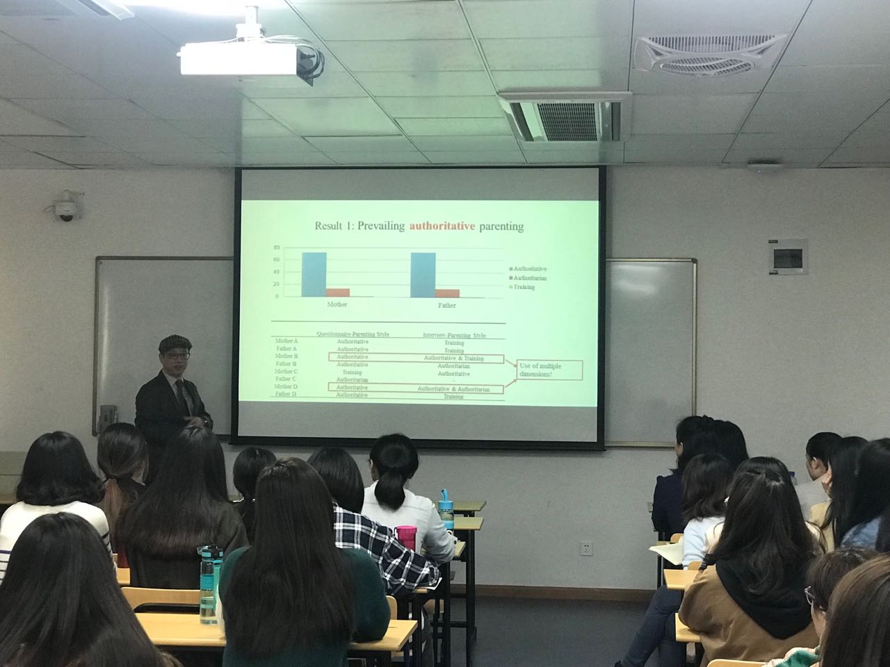 李辉教授一身独特的港风打扮一出场就吸引了同学们的目光。李辉教授的报告题目是“变化的中国,变化的家长:家长教养风格与儿童早期发展关系的实证研究”,他详尽报告了该研究的研究背景、研究方法、研究结果,并对“虎妈猫爸、狼爸”不同组合的家庭对儿童发展的影响进行了深入分析。李辉教授还介绍了香港大学的发展现状与研究现状。整个讲座过程中,因为李辉教授诙谐幽默的讲授风格,教室中不时传出一阵阵笑声。大家也都受益匪浅,并对李辉教授精彩的讲座表示衷心感谢。