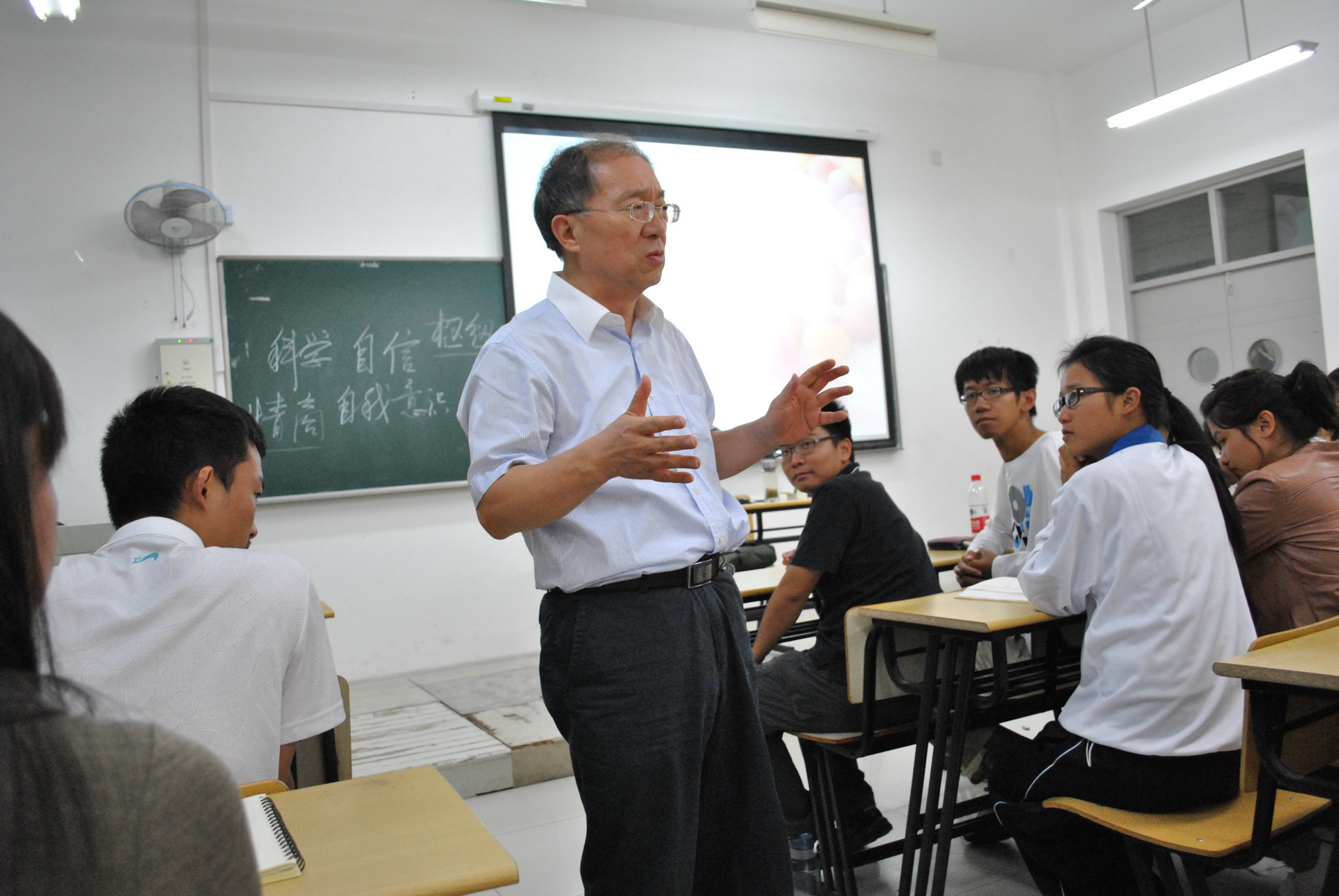 讲座伊始,卢家楣教授以朴实诙谐的语言讲说了他对心理的认识。卢教授向同学们介绍了心理学在全球、全中国以及在上师大的发展历程,充分肯定了心理学对社会生活的重要性。紧接着卢家楣教授深入浅出地介绍了心理学研究的方法,也进一步树立了学生们对我校心理学专业的认同感、心理学科在我校发展的自信。