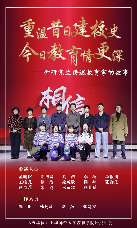 本次红色话剧全程历时三个多月,从9月份开始筹备,经过教育学院师生的充分讨论酝酿,于12月底正式演出。此部话剧由教育学院30余名研究生参与演出,该话剧充分利用话剧的舞台艺术,成功地塑造了上海师范大学教育先锋勇于奋斗、艰苦办学、爱国爱生的故事。同时本次演出活动作为学院研究生学生骨干专项教育学习的一部分,坚持立德树人根本,切实提升研究生学生的思想水平,不断增强使命担当,全面展现研究生的优良品质和与时俱进的精神风貌。
