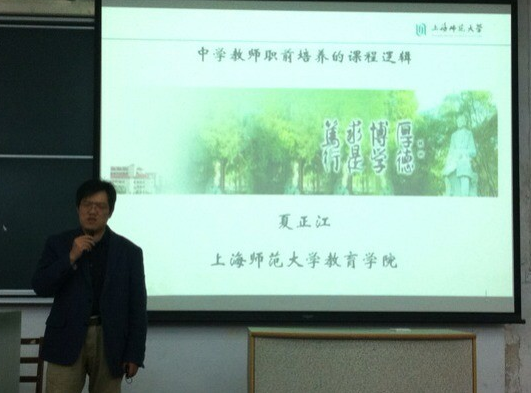 在报告中,夏正江教授首先围绕“中学教师职前培养的课程逻辑”这个报告主题介绍了相关研究背景;其次,提出由于中学教师职前培养具有的特殊性及其固有的局限性,师范院校应该大幅度提高教育类课程比例的主张是不切实际、论据不足的。再次,在简要论述教育类课程的数量逻辑基础上,详细论证了教育类课程的质量逻辑。本着教育类课程的开设不在于数量多,而在于质量精的原则,夏正江教授认为,教育类课程不只是满足教师最基本的工作需求,更重要的是要为师范生日后的可持续发展打下全面、均衡、扎实的基础。最后,由于时间关系,对于如何进一步改进教育类课程的具体建议,夏教授欢迎有兴趣的同学阅读他的相关论文。