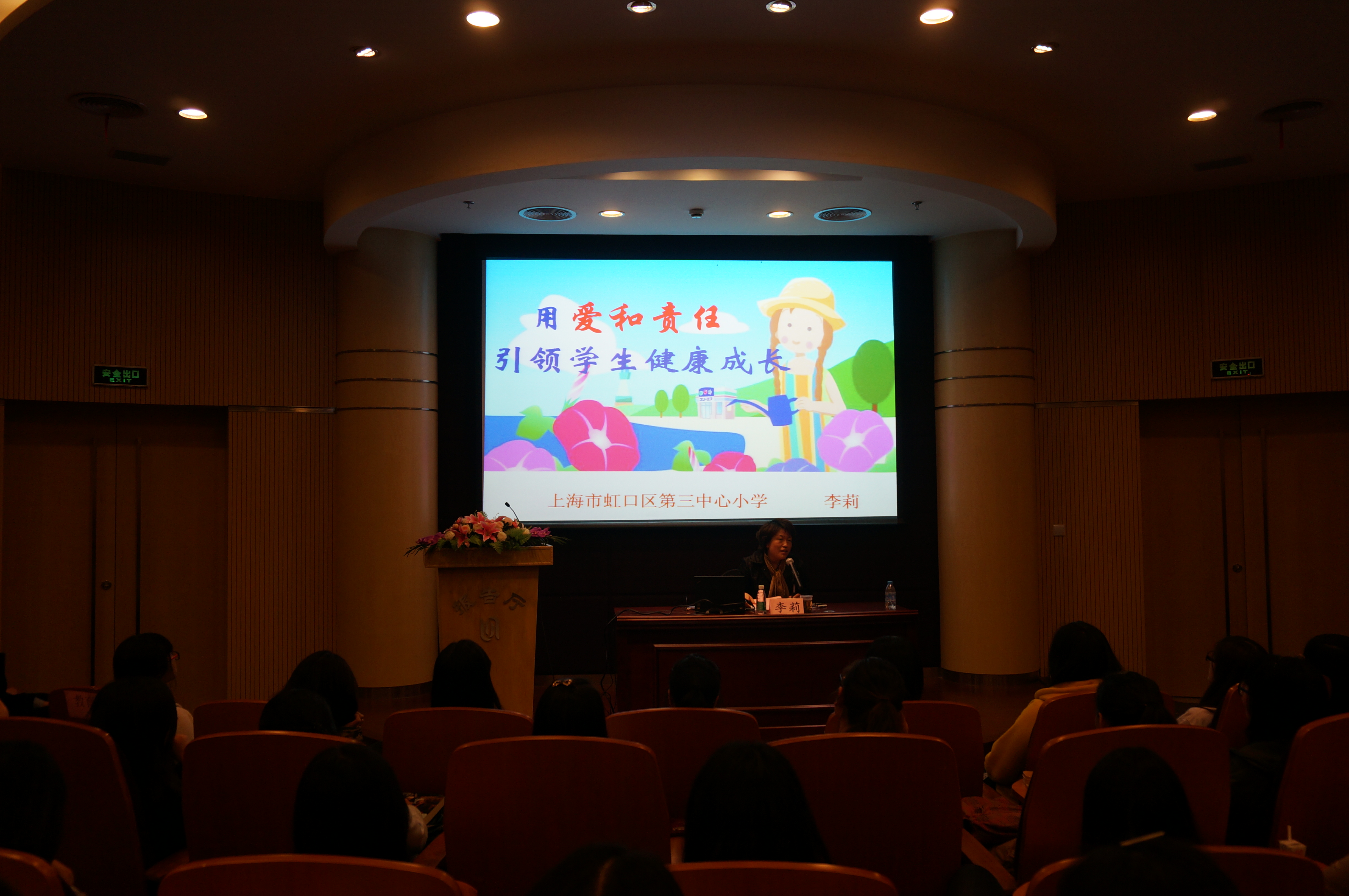 开幕式之后,由首届上海市中小学班主任工作室负责人、全国模范教师李莉老师为同学们带来主题为“用爱与责任引领学生健康成长”的精彩演讲。李老师结合从教24年与长年担任班主任的宝贵经验,用教学中真实案例,详细阐释了新教师如何成为一名优秀的人民教师,为师大学子展示了模范教师的卓越品质。
