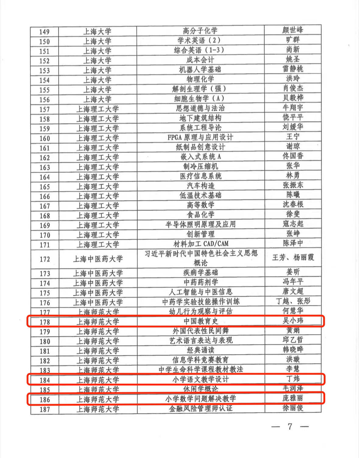 近日,上海市教育委员会公布2024年度上海高校市级一流本科课程认定结果。经市教委组织专家评审,我院共有3门本科课程被认定为2024年度上海高校市级一流本科课程,分别是吴小玮教授的《中国教育史》,丁炜教授的《小学语文教学设计》和庞雅丽副教授的《小学数学问题解决教学》。