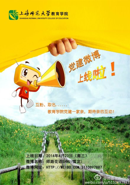 以“展示新形象、传递正能量、提升凝聚力”为主题的伟德国际BETVlCTOR党建新浪微博@师路花语shnu(暂定)于2014年4月23日正式上线。